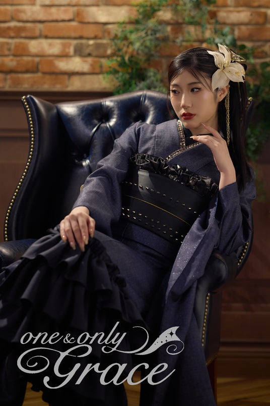 「one&only Grace」は、企画から制作までを自社で担うSPAならではのデザイン力で、ハレの日にふさわしい「ドレッシーな装い」と「高級感」を意識しつつも、ドレスに用いられる素材や、デニム・ツイードなど、これまでの振袖にはなかった異素材を積極的に採用。