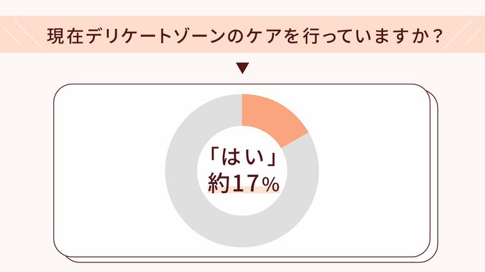 同アンケート内で現在デリケートゾーンのケアを行っているか尋ねたところ、「はい」と答えた人は300人のうち約17%。