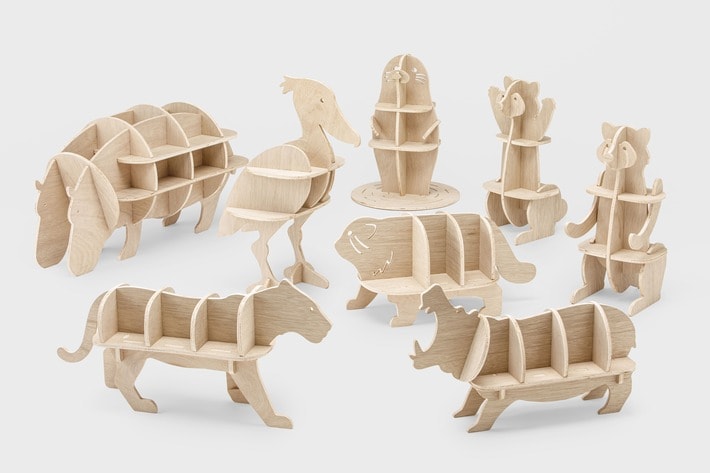 実際の動物の身体のバランスとは多少違いがありますが、ぎりぎりまで動物に寄り添っていただき、家具として利用できるようにデザインしていただきました。でき上がった商品を見て、「インテリアで使用した時に、どんなものを置いたら似合うのかな?」と想像しました。やっぱり、動物のグッズが似合うのかな?