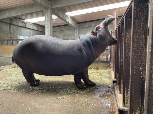 「カバラック小」のモチーフとなったカバ。印象的な口をあけているシーンを再現