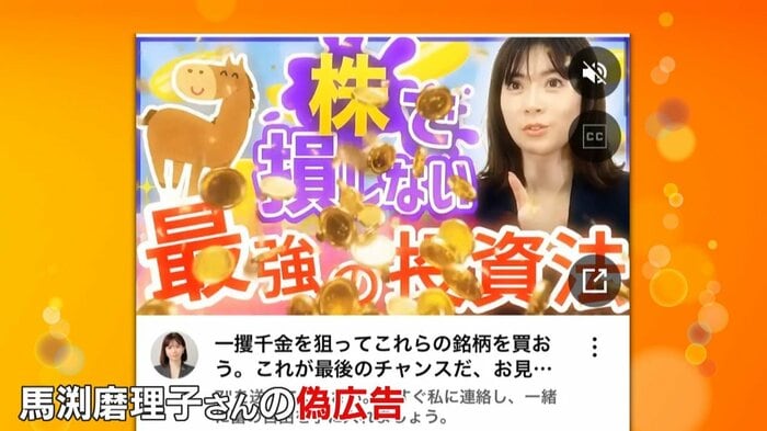 実際に、何者かが自身の動画を勝手に作り替え、SNS型投資詐欺に悪用されたと話すのは、経済アナリストの馬渕磨理子氏。