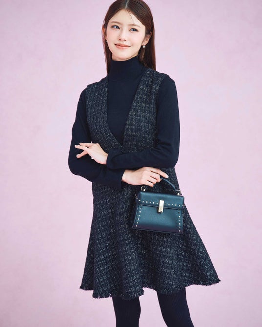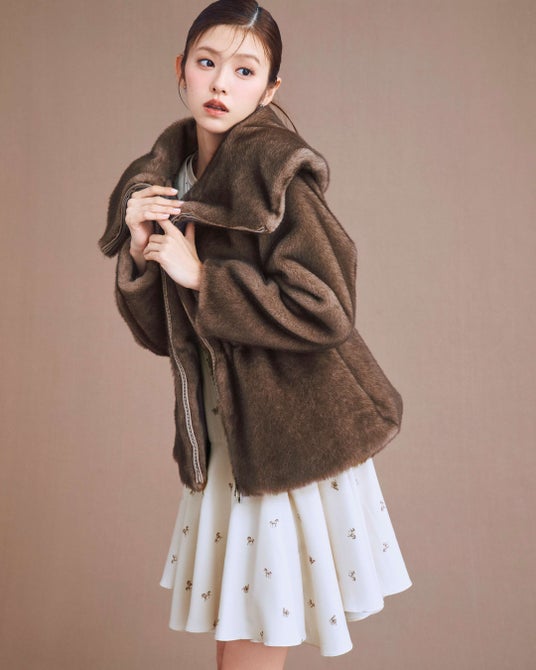 特別なシーンや気分を上げたい日、一段とオシャレをしたい時に着たくなるのがCELFORDのお洋服です。撮影中も新作のアイテムにずっとトキメキが止まらなかったです! 特にホースモチーフのワンピースに、ふわふわのアウターのコーディネートがお気に入り。ミニ丈だけど上品さがあって、私もこの冬に取り入れたい一着です。