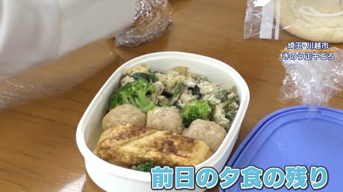 この日のお昼ご飯は、きのうの夕食の残りを詰めたお弁当です。