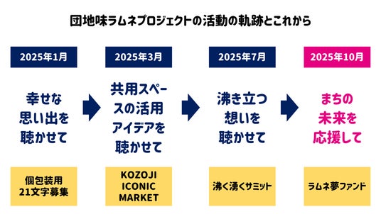 - 集まった寄付金は団地味ラムネプロジェクト事務局が厳正に管理し、すべて地域を元気にする活動資金にします。使途や結果は応援完了後に公表します。(2026年3月末を予定)