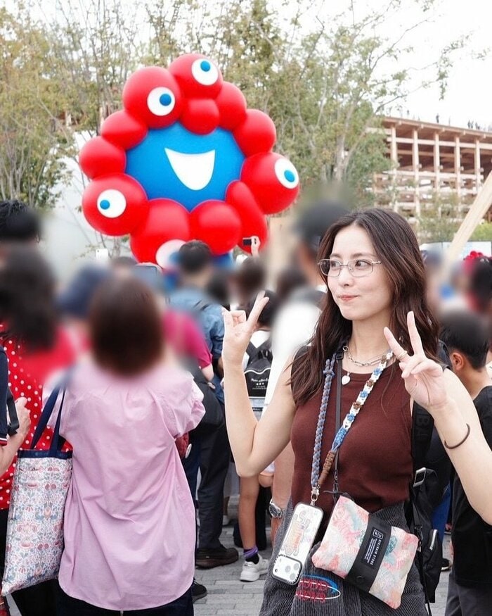 また、石川さんは、ミャクミャク像の前で人混みに紛れながら両手でピースをしたり…