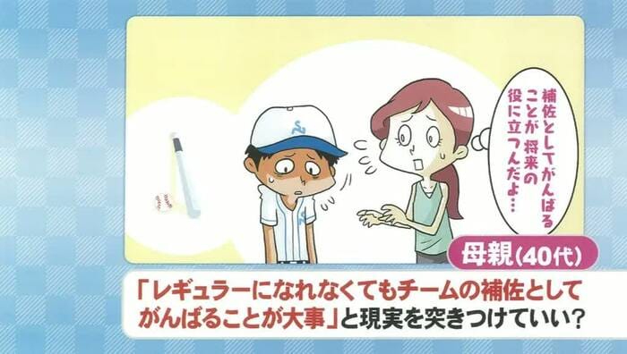SNSでも「ここで頑張った経験が自信に結びつく」という声が上がる一方、「子どもが補欠になってから向上心がなくなってしまった」という悩みや「なんであれ親が押し付けるのはよくない」など、様々な意見があがった。