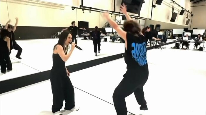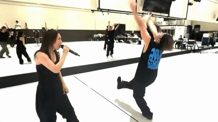 広々としたスタジオで、マイク片手に熱唱しながらダンサーの周りをぐるっと回る様子や・・・