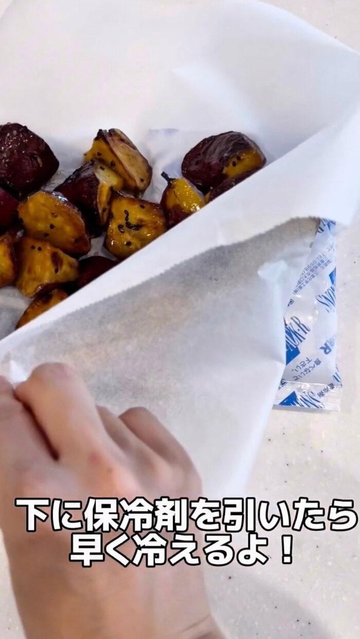 小倉さんは「下に保冷剤を引いたら早く冷えるよ!」と、主婦ならではの知恵も紹介しています。