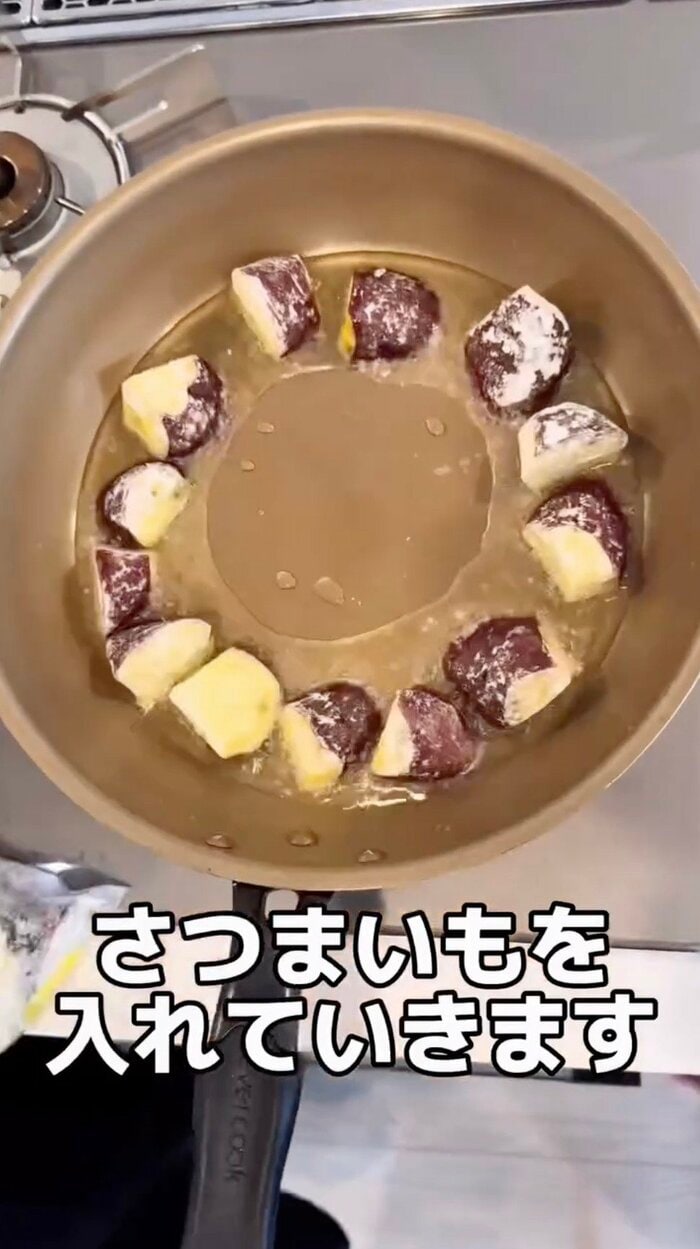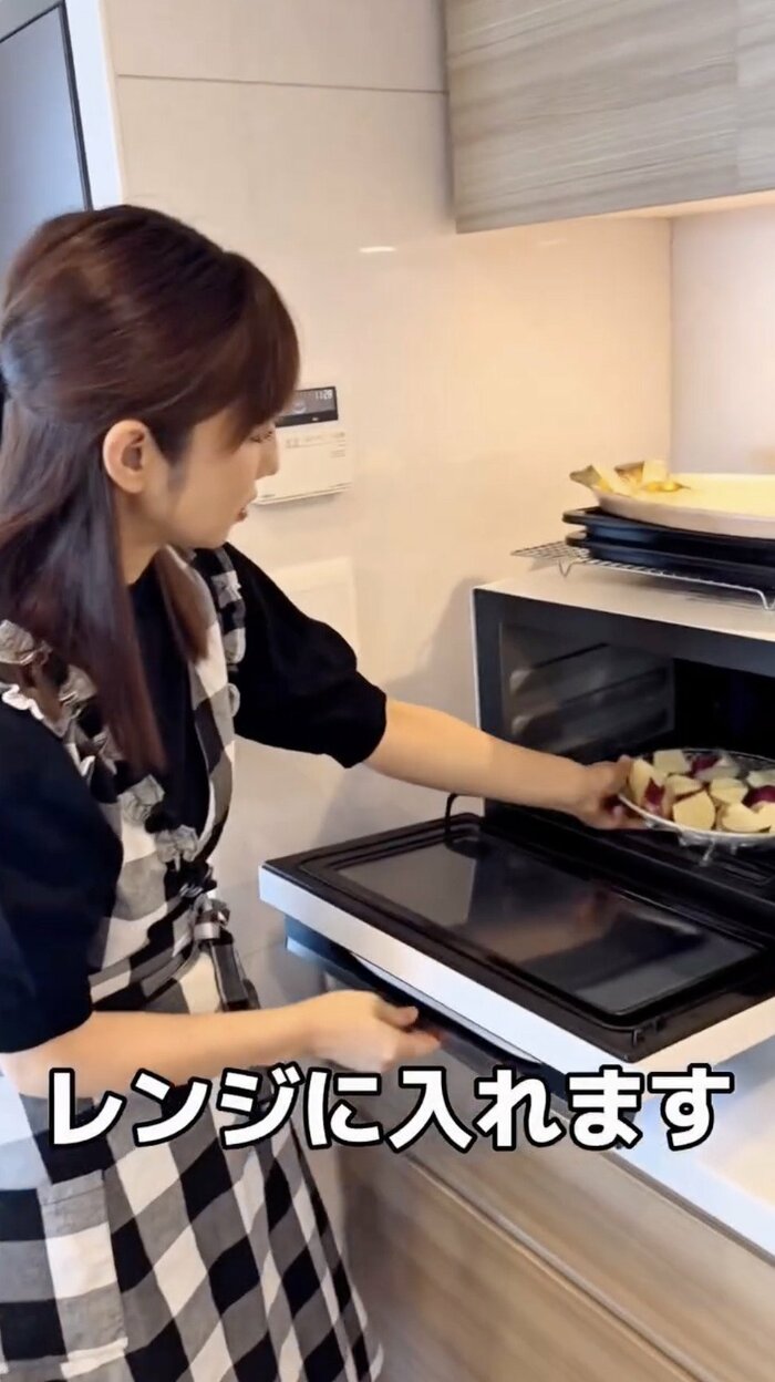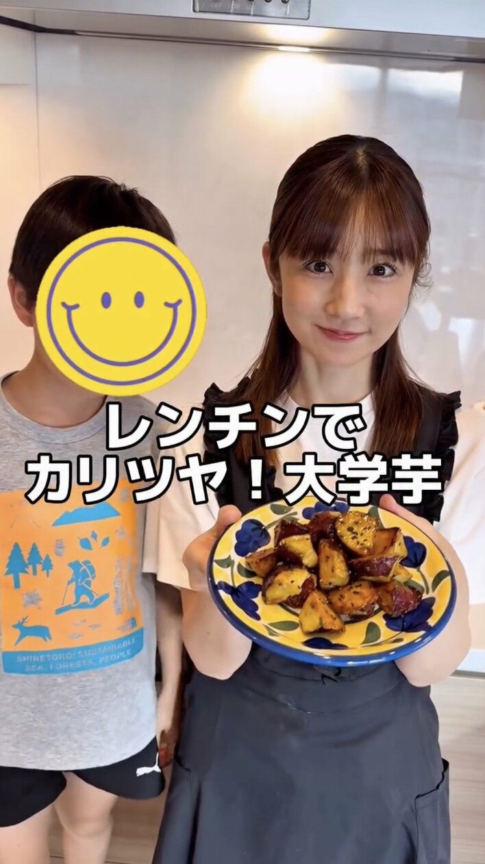 「カリツヤ 大学芋」と題し投稿した動画では、「レンチンでカリツヤ!大学芋」などと小倉さん自身でナレーションも入れ、大学芋の簡単レシピを紹介しました。
