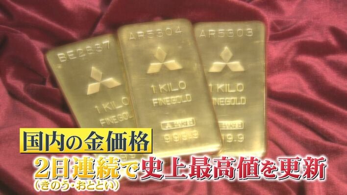 中東情勢の悪化による世界経済への影響が意識され、安全資産である金の需要が高まっていることや、円相場が、円安ドル高傾向になっていることなどが高騰の理由と見られます。