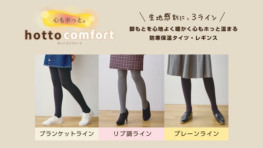 アツギ株式会社(本社:神奈川県海老名市、代表取締役社長:日光信二)は、 2025年秋冬シーズンに「comfort/コンフォート」の厚手タイツ・レギンスカテゴリを「hotto comfort/ホットコンフォート」と称してリニューアルいたしました。ホットコンフォートは保温性にこだわり、生地感別に「ブランケットライン」 「リブ調ライン」 「プレーンライン」の3ライン展開で、寒暖差や脚もとの冷え対策におすすめのタイツとレギンスをご提案します。アツギオンラインショップでは10月10日(金)発売、店頭では10月中旬より順次展開いたします。