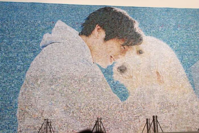 会場には、全国から寄せられた“癒し犬”の“最高に癒された瞬間”の写真を使用したモザイクアートが。