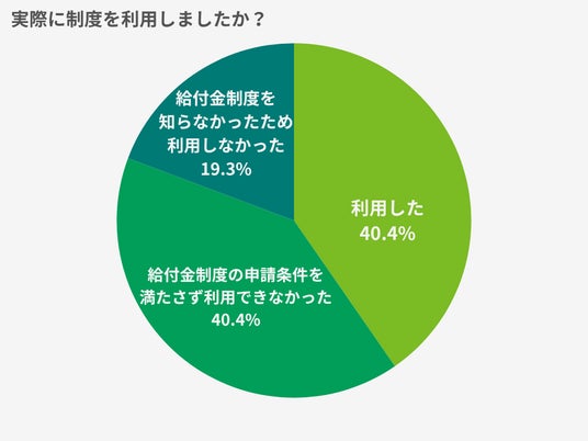 また制度を実際に利用できた人は4割にとどまり、2割は知らなくて利用できなかったという結果に。