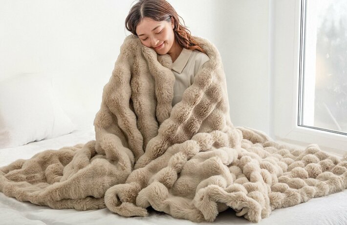 現在SNSで話題の“置くだけで可愛い毛布”はもこもことした立体的なデザインが特徴でソファやベッドに掛けるだけで空間を今っぽく演出できるアイテムとして注目を集めています。