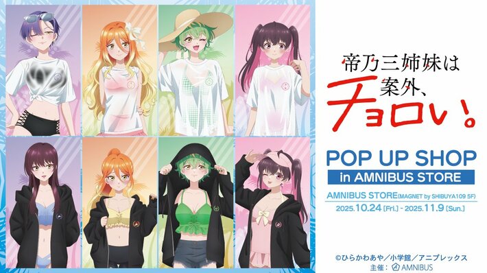 2025年10月24日(金)より「AMNIBUS STORE」にて「TVアニメ『帝乃三姉妹は案外、チョロい。』 POP UP SHOP in AMNIBUS STORE」の開催が決定いたしました。