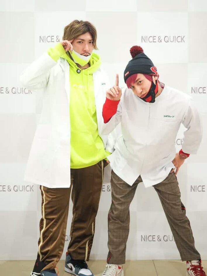 2月16日(日)に開催された無添加ボタニカルスキンケアブランド「NICE & QUICK(ナイス&クイック)」の新商品発売を記念したPRイベントに人気お笑いコンビEXITがスギ薬局・名古屋ゼロゲート店の一日店長として白衣姿で登場した。