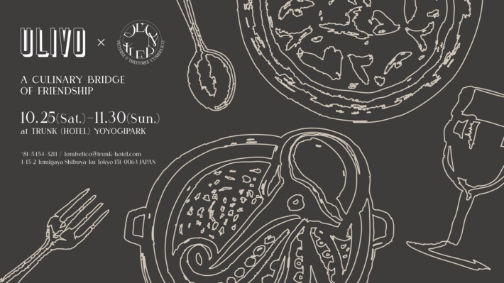 渋谷区・富ヶ谷のブティックホテルTRUNK(HOTEL) YOYOGI PARKでは、館内のメインダイニングPIZZERIA e TRATTORIA L'OMBELICO(ピッツェリア エ トラットリア ロンベリコ)にて、ニューヨークの人気イタリアンレストランUlivo(ウリーヴォ)のエグゼクティブシェフを招いた、期間限定のスペシャルダイニングイベントを開催いたします。