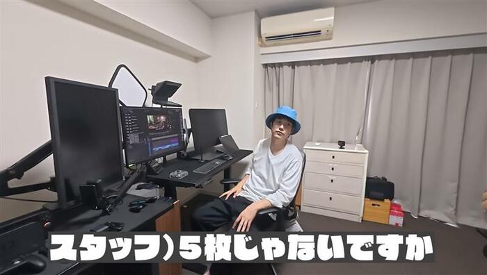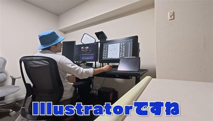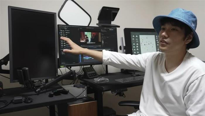 「YouTubeの動画編集もたまに自分でやったりとかもするんですよ」と明かしていて、デスクの上にはディスプレーが。「これPremiere(プレミア)ですけど、全然分からないんですよ。本当に初心者なので」と、本格的な編集アプリを使っているといいます。