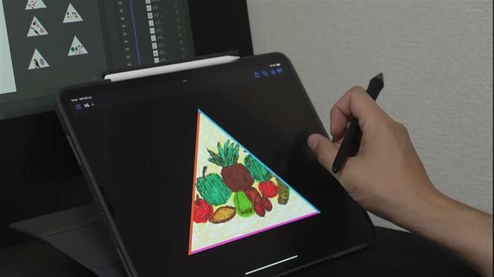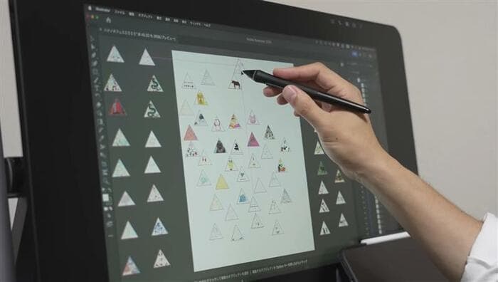 タブレットのように、ペンでイラストを触り、作業をしていきます。