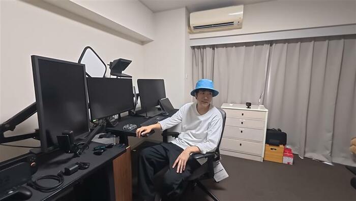 5台のディスプレーやゲーム実況用のライトなど、本格的な仕事部屋を初公開しました。