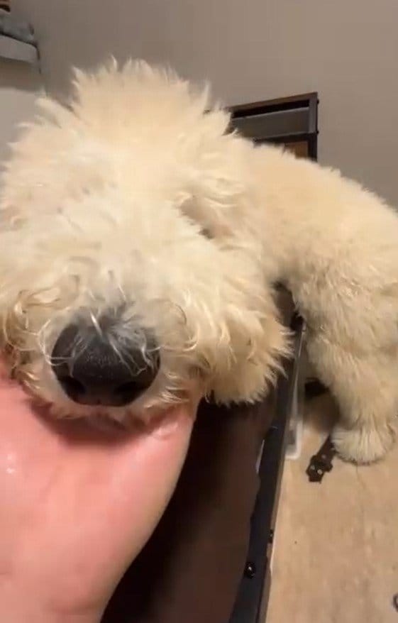 クリーム色のもふもふな毛がとても気持ちよさそうなぶぶくんは、他のわんちゃんや人もみんなお友達と思っているほど、触れ合うことが大好きなんだそう!