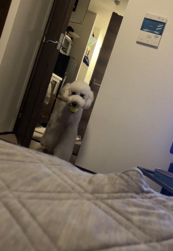 飼い主に遊んでほしくて“そろりそろり”と遠くから近づいてきていたんですね。