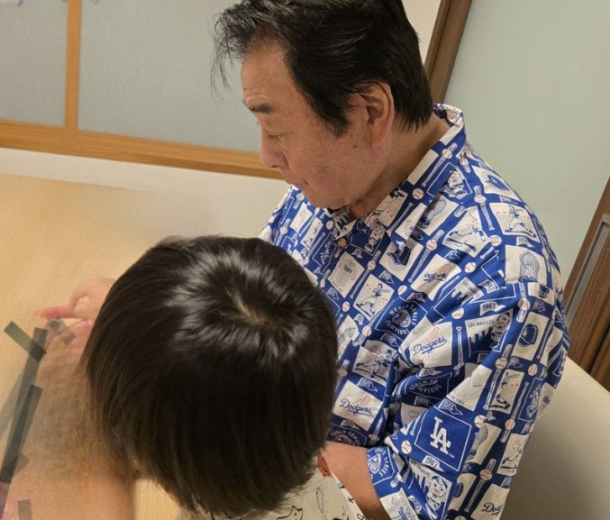 そこには、シャツを着た高橋さんが優しい表情で横に座る孫に読み聞かせをする様子が。孫は後頭部しか写っていないですが、なんだか幸せあふれる空間に思わずほっこりしますね♪