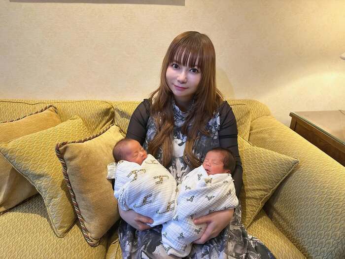 出産当日には、生まれたばかりの双子を胸に抱き、幸せに満ちあふれた表情をしたショットを投稿していました。