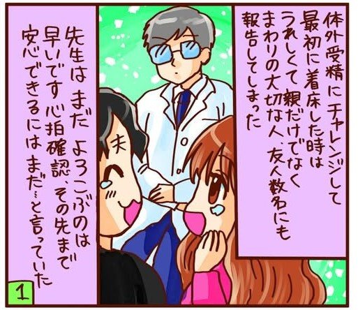 先生からは、「まだよろこぶのは早いです 心拍確認 その先まで安心できるにはまだ…」と言われたそうで…