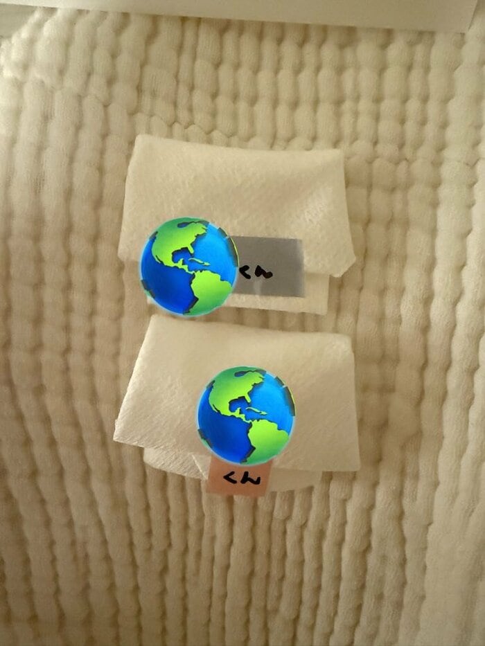 公開された写真には、「○○くん」と名前が書かれた白い柔らかな包みが二つ並べられています。大切なへその緒が包まれているようです。