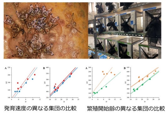 国立大学法人岡山大学(本部:岡山市北区、学長:那須保友)の学術研究院環境生命自然科学学域(農)の宮竹貴久教授は、東京大学 総合文化研究科 広域科学専攻 広域システム科学系の松村健太郎助教とともに、日本ではすでに根絶され、特殊害虫に指定されているウリミバエを材料として、発育期間の長短と、繁殖開始齢のタイミングに人為的に選抜をかけた系統から卵を採集して、5つの異なる温度で幼虫期間と発育期間を測定しました。