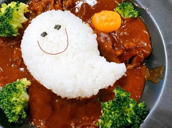 白米を“おばけ”の形にして、真ん中に盛り付けています。