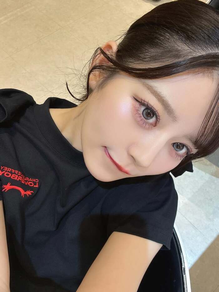 「はーとくださいな」とつづったショットでは、うるうるとした瞳で見つめるアップショットを公開しています。アイラインを引いたピンクカラーのアイメイクで、口紅も印象的。頬辺りには、ツヤっと光るハイライトをのせています。