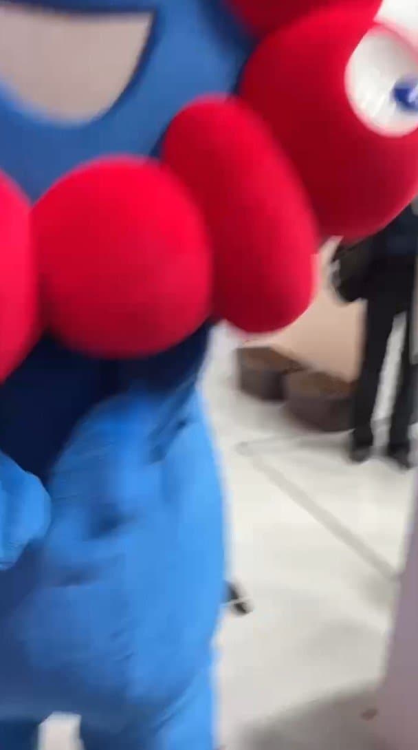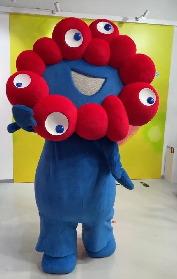 ミャクミャクが手を振りながら、てくてくこちらに近寄ってくると…