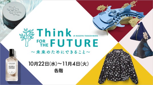 ものをつくる企業とお客さまをつなぎ、地域・人・社会を見直すきっかけになるようなブランドやアイテムをご紹介する「Think FOR THE FUTURE~未来のためにできること~」を開催。百貨店の1F正面ステージには再生素材の段ボールをつかった装飾が登場します。また、ジェイアール名古屋タカシマヤの開店25周年特別企画として、俳優・松山ケンイチ氏と小雪氏が立ち上げたライフスタイルブランド<モミジ>×名古屋市の伝統工芸「有松絞」とのコラボレーションアイテムなども販売します。