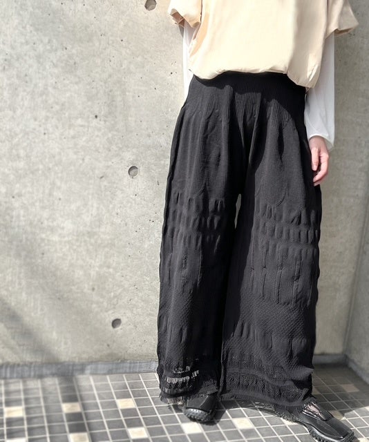生産時に発生してしまう”捨て生地”をデザインに生かし、不要な生地を出さないモノづくりを徹底。繊細なディティールワークとユーモアを大切にした自由な発想のレッグウェアです。