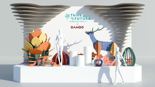 「子どもたちを想う気持ちを、未来につなげる」をコンセプトに環境に配慮した素材を使い、親子で楽しめるプロダクトを展開する<DAMBO>の装飾が正面ステージに登場します。