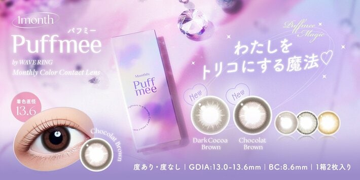 コンタクトレンズ通販サイトを運営する、株式会社パレンテ(本社:千葉市中央区、代表取締役:吉田 忠史)は、オリジナルブランド「WAVE」のカラーコンタクトレンズシリーズ『WAVE RING』のマンスリータイプ『Puffmee(パフミー)』から新しく2色の新色を2025年10月14日(火)に発売しました。