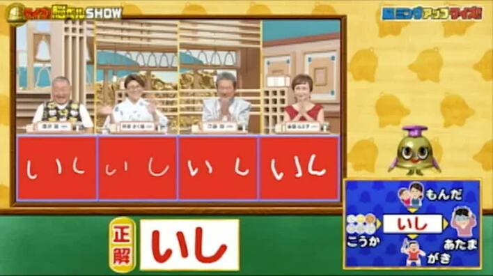 正解は「いし(航海士・問題視・石頭・石垣)」。見事全員正解。