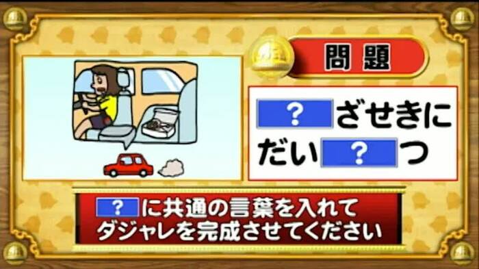 次は、ダジャレ穴埋めの問題。「?」に共通する言葉を入れてダジャレを完成させてください。