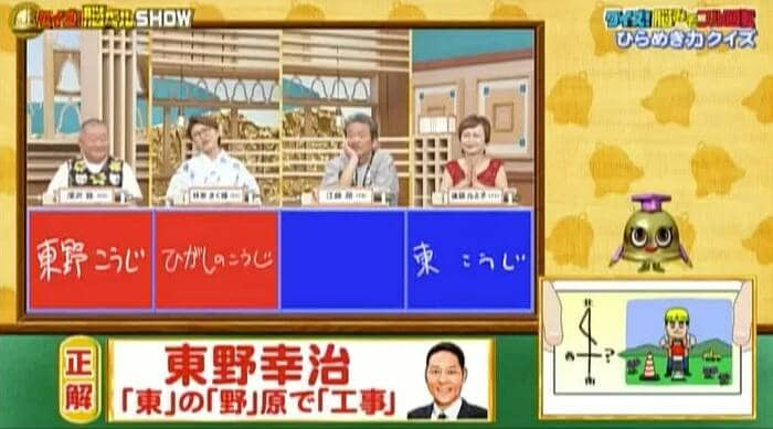 正解は「東野幸治(『東』の『野』原で『工事』)」。深沢さんときく姫さんの2人が正解!