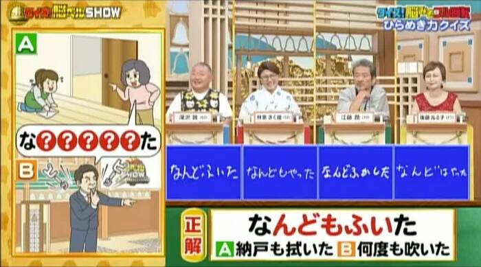 正解は「なんどもふいた(納戸も拭いた/何度も吹いた)」。正解者はゼロでした。