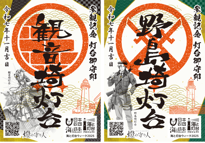日本財団「海と灯台プロジェクト」を運営する一般社団法人海洋文化創造フォーラムは、この度、プロジェクトとして初となる「灯台御守印(とうだいごしゅいん)」を作成。2025年11月1日~8日の「海と灯台ウィーク」期間中、日本第1号の西洋式灯台である観音埼灯台(神奈川県)と同第2号の野島埼灯台(千葉県)にて、参観された方にお渡しします。