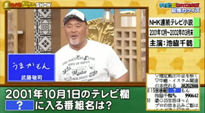 最後は、テレビ欄の問題。今から21年前の2001年10月1日のテレビ欄、「?」に入る番組名は何でしょうか?