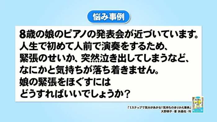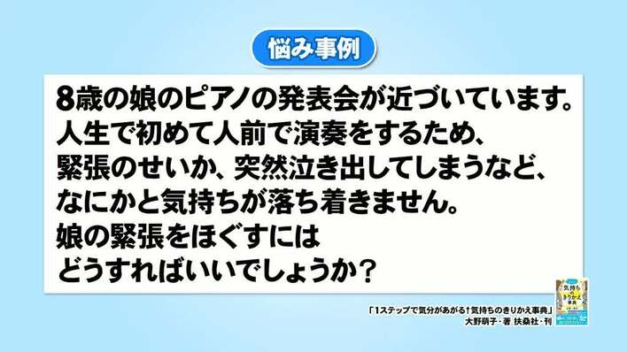 「ピアノの発表会前で、突然泣き出すなど子どもの気持ちが落ち着かない。緊張をほぐすにはどうしたらいい?」というお悩みでは、大神さんが経験談を語りました。