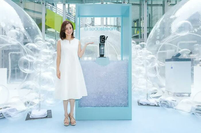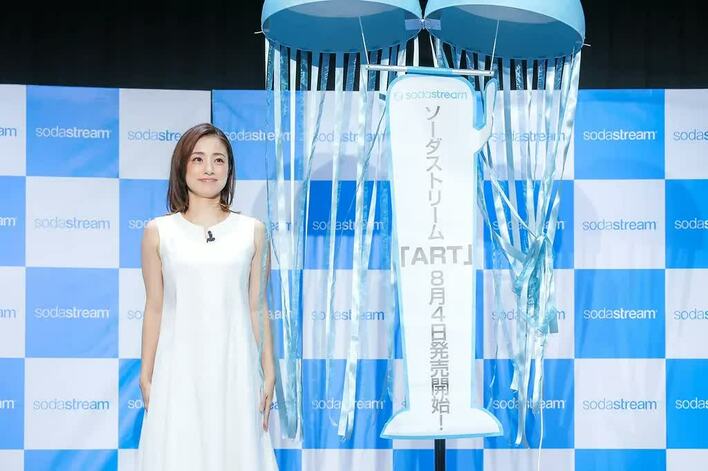 上戸彩さんが、8月4日に行われた、炭酸水メーカーの「ソーダ―ストリーム ART 新製品発表会」に出席しました。
