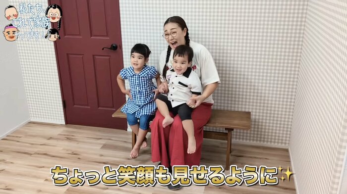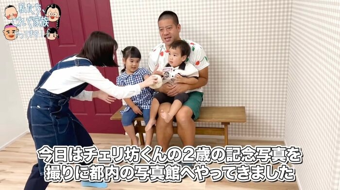 最初は夫のチェリー吉武さんと長女、長男の3人での撮影が始まります。