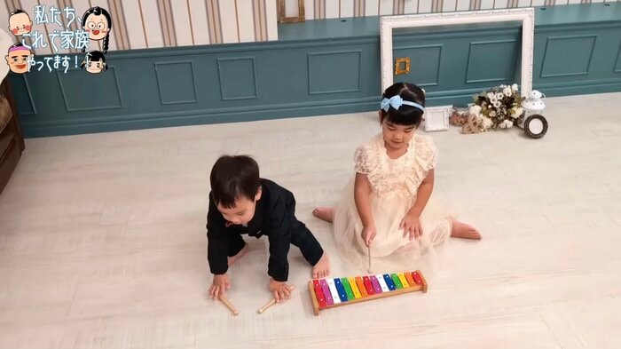 格闘の末、なんとか撮影できたという写真を見てみると、木琴を膝の上に乗せて明るい表情を浮かべる子供たちの姿や…