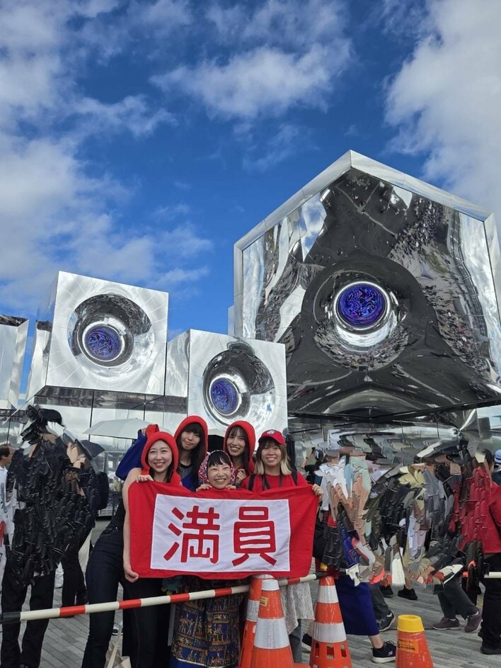平日の仕事帰りに、ふらっとご飯を食べに訪れたりするほど万博に通い詰めたという5人組に遭遇。すると、彼女たちは万博が終わるともう2度と見ることができない、“あのマーク”のコスプレをしていました。その姿とは…。