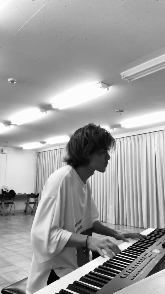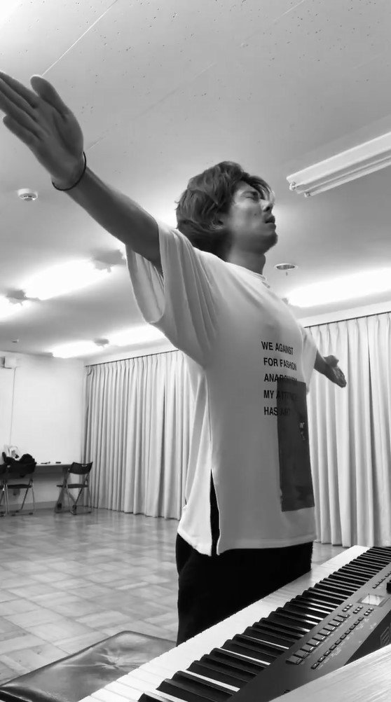 投稿されたモノクロ動画では、白のTシャツを着た柿澤さんが音楽に合わせて、ピアノを演奏する姿が。